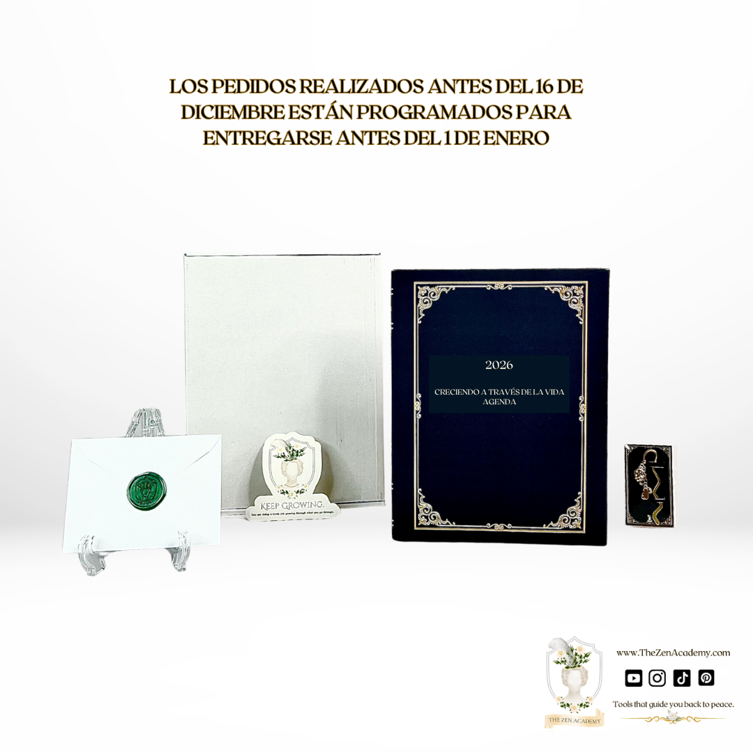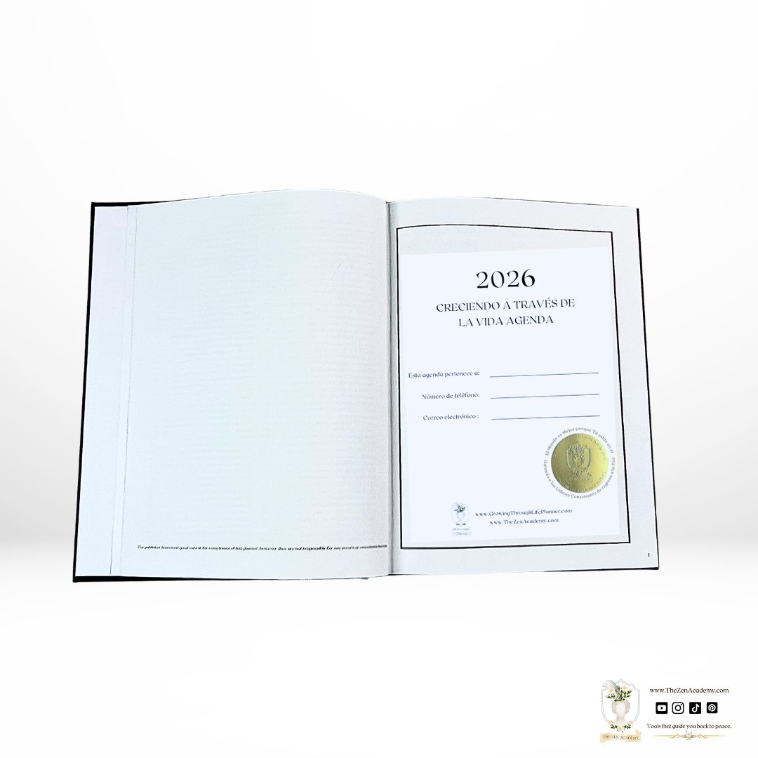 Para finales de año, el 2026 Creciendo a Través de La Vida Agenda será una representación anual de su crecimiento. Su propio anuario personal; una colección de sus metas, valores, recuerdos y una representación de su compromiso con el crecimiento y la presencia consciente hasta el 2027.